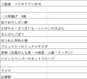 1) VEGETARIAN: assorted vegetable dishes such as dashimaki, kinpira, eggplant, spinach, vegetable tempura and tofu.